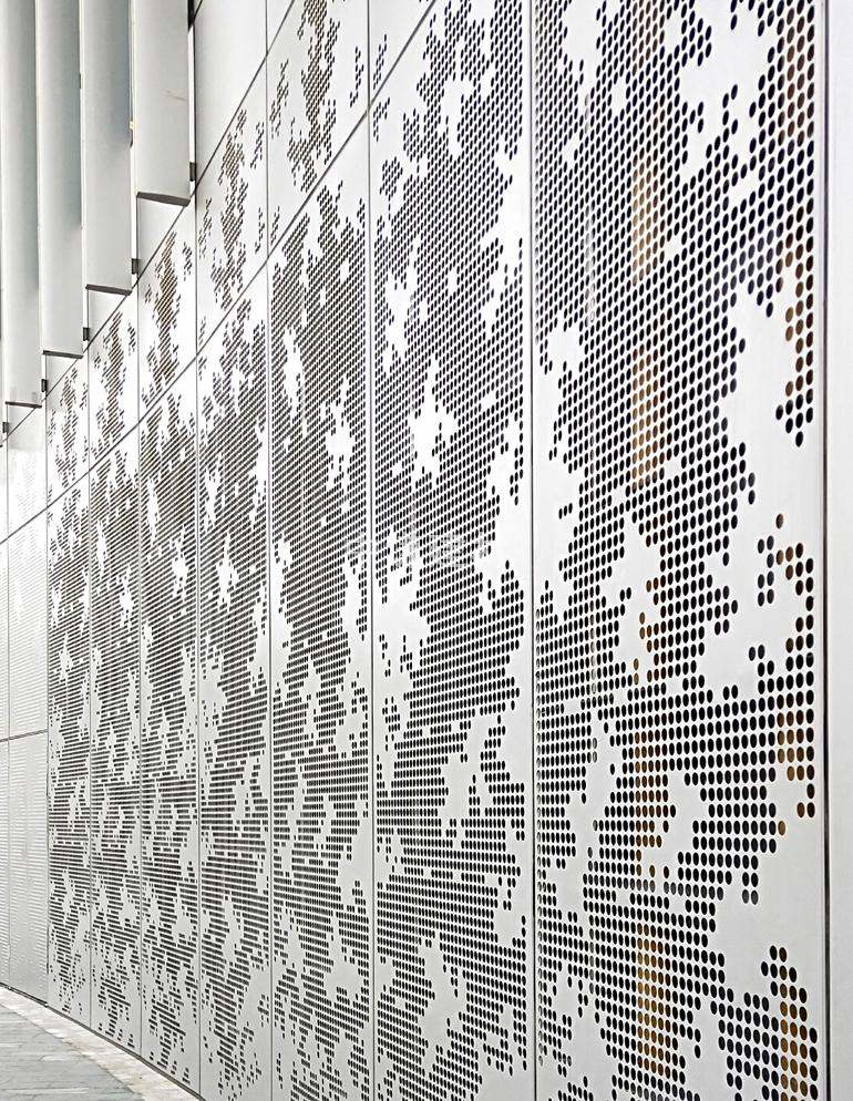 外墻裝飾網(wǎng)采用的是鋁合金板或鋁板為底材,通過(guò)模具加工沖壓加工而成,表面處理為陽(yáng)極氧化或經(jīng)典粉末噴涂處理加工,菱形沖孔網(wǎng)是奧迪4s店指定外墻板產(chǎn)品,而奧迪4s店指定鋁單板的要求板材厚度為2.0mm,孔型規(guī)格為25*60mm蜂窩孔(也稱(chēng)六角孔,菱形孔)而它的標(biāo)準(zhǔn)外型尺寸是525*2000mm,630*2400mm梯形穿孔鋁板,特殊尺寸會(huì)根據(jù)展廳的需求進(jìn)行定制。