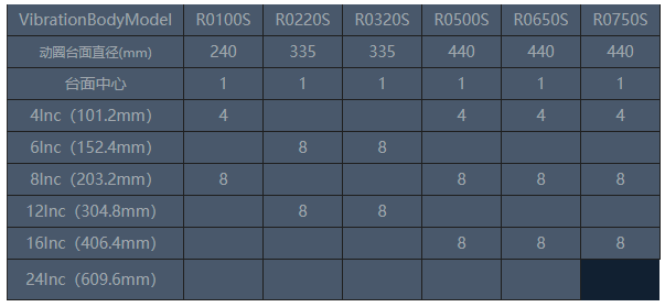 圓形擴(kuò)展臺(tái)具有良好的頻響特性,其臺(tái)面螺釘分布符合上表標(biāo)注尺寸。